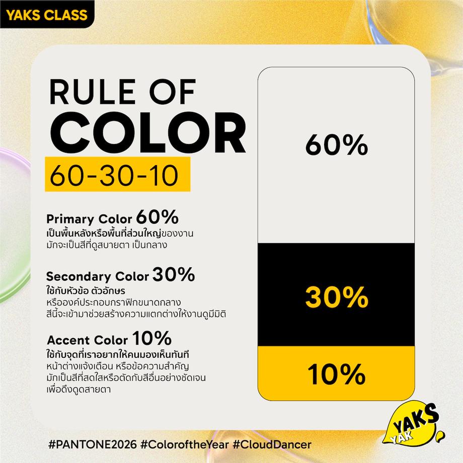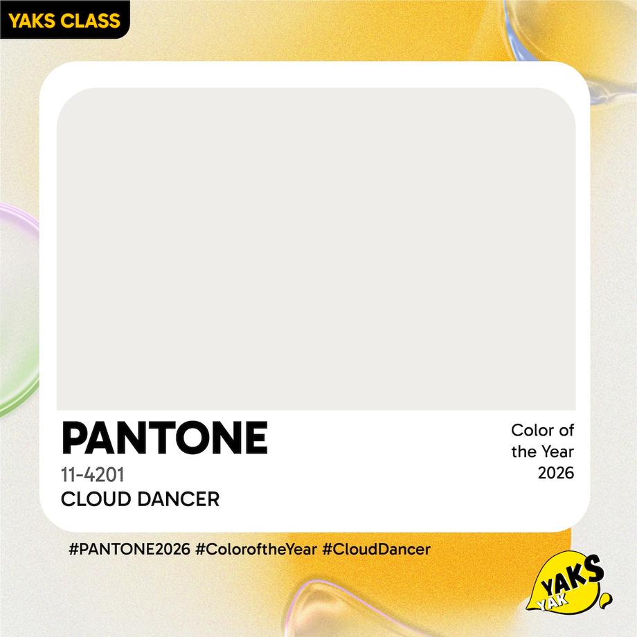 ปี 2026 จะพลาด PANTONE 2026 ได้ยังไง!? Say Hello! ชาว Content Creator และนักการตลาดทุกคน! ยินดีต้อนรับเข้าสู่ YAKS CLASS คลาสเรียนฉบับย่อยง่ายโดย ยักษ์ย๊าก เอเจนซี่ วันนี้เราจะมาอัปเดตเทรนด์ PANTONE COLOR เทรนด์สี 2026 สีที่เรียกได้ว่าเป็น "The New Normal" ของวงการดีไซน์ปีนี้เลยค่ะ นั่นก็คือสี "Cloud Dancer"