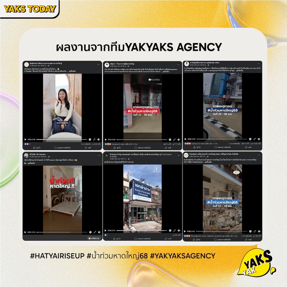 ในฐานะคนในพื้นที่ ยักษ์ย๊ากส์ เอเจนซี่ เราขอเคียงข้างทุกคนเสมอค่ะ ช่วงที่วิกฤตน้ำท่วมที่ผ่านมา เราได้ลงพื้นที่ทำคลิปอัปเดตสถานการณ์เพื่อส่งต่อความช่วยเหลือ และผลิตคลิปให้กำลังใจที่รวมรอยยิ้มของชาวหาดใหญ่และลูกค้าของเรา เพราะเราเชื่อว่าพลังของการสื่อสารที่ดีจะช่วยเยียวยาจิตใจได้ค่ะ
